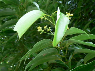| 『花壇地錦抄』(1695)巻三「冬木之分」に、「肉桂(につけい) しばの葉ニにたり。葉も木も香味有」と。 |
