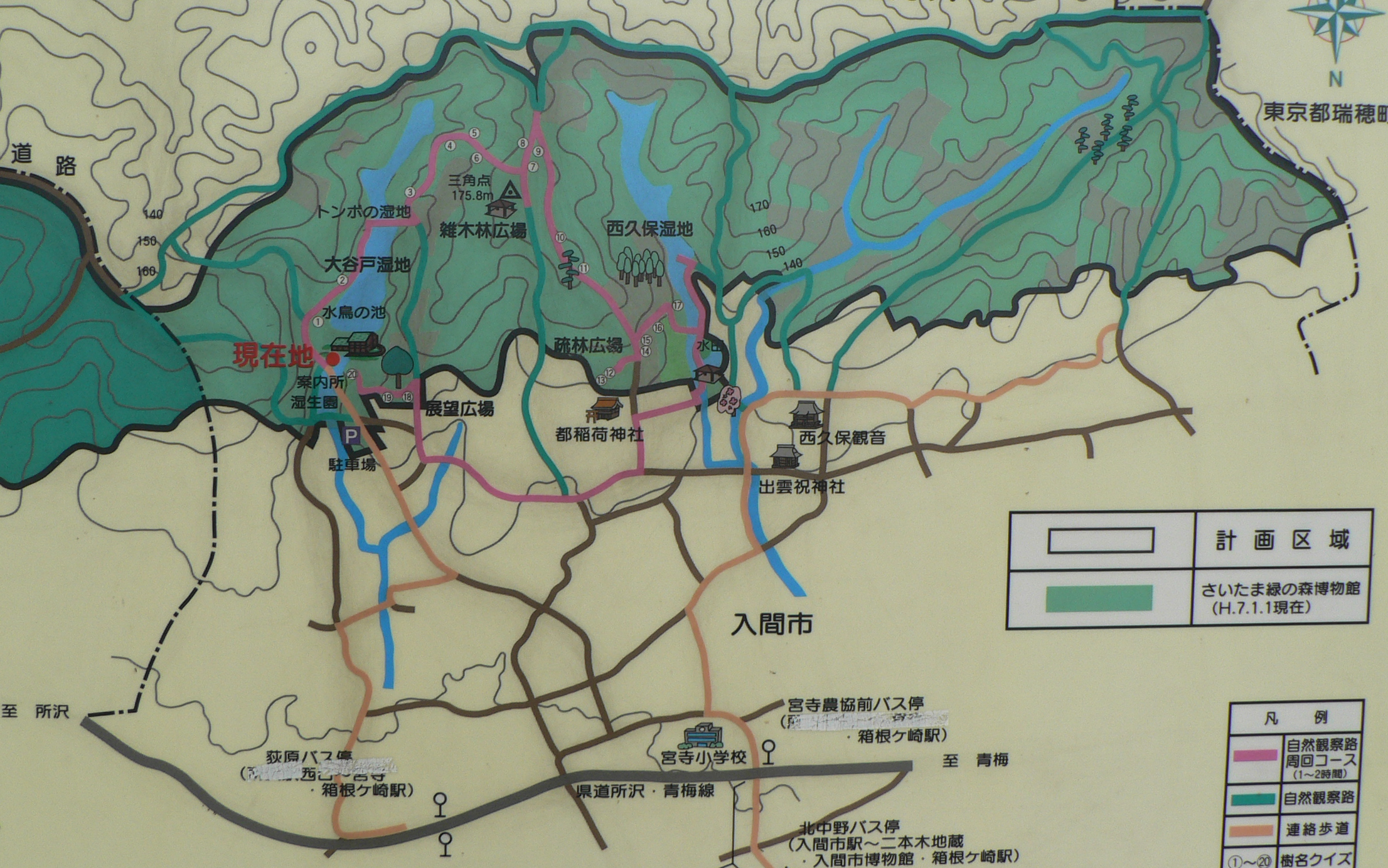 英名 Saitama Midori-no-mori Nature Park 地番 埼玉県 入間市 宮寺 HP https://saitama-midorinomori.jp/ 設置者 運営者 株式会社自然教育研究センター 交通手段 西武池袋線「小手指」から路線バスおよび徒歩。 上記HPを参照。
